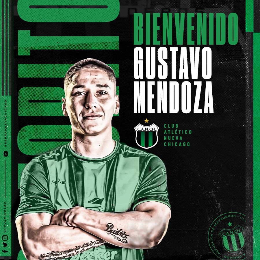 El Club Atlético Nueva Chicago comunica a socios y socias que se formalizó la llegada de Gustavo Mendoza para convertirse en nuevo jugador de la institución de cara a la próxima temporada.