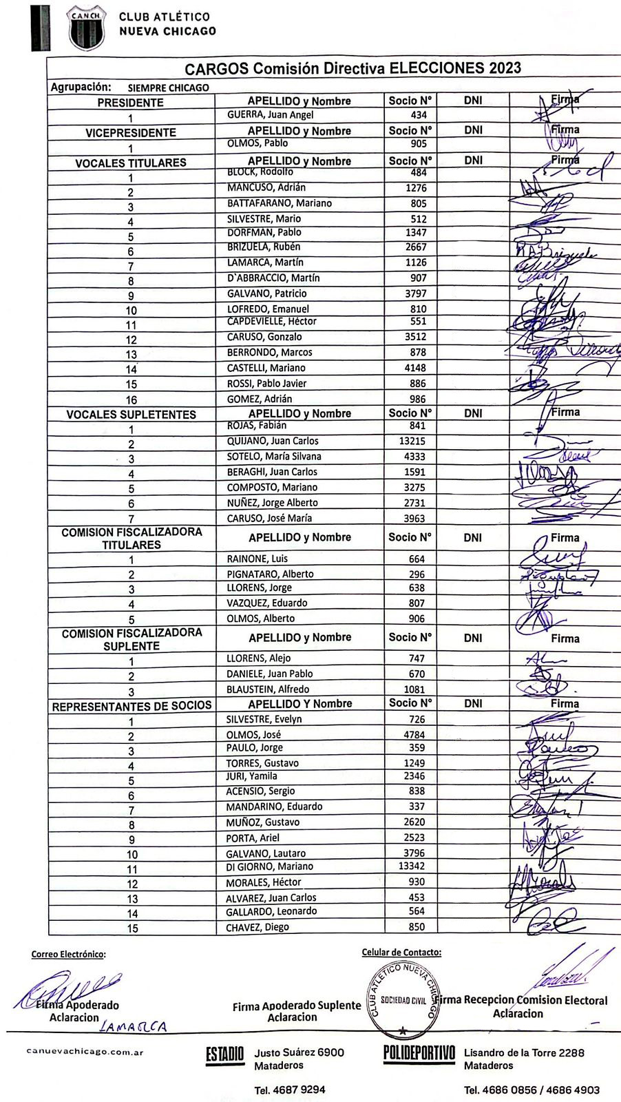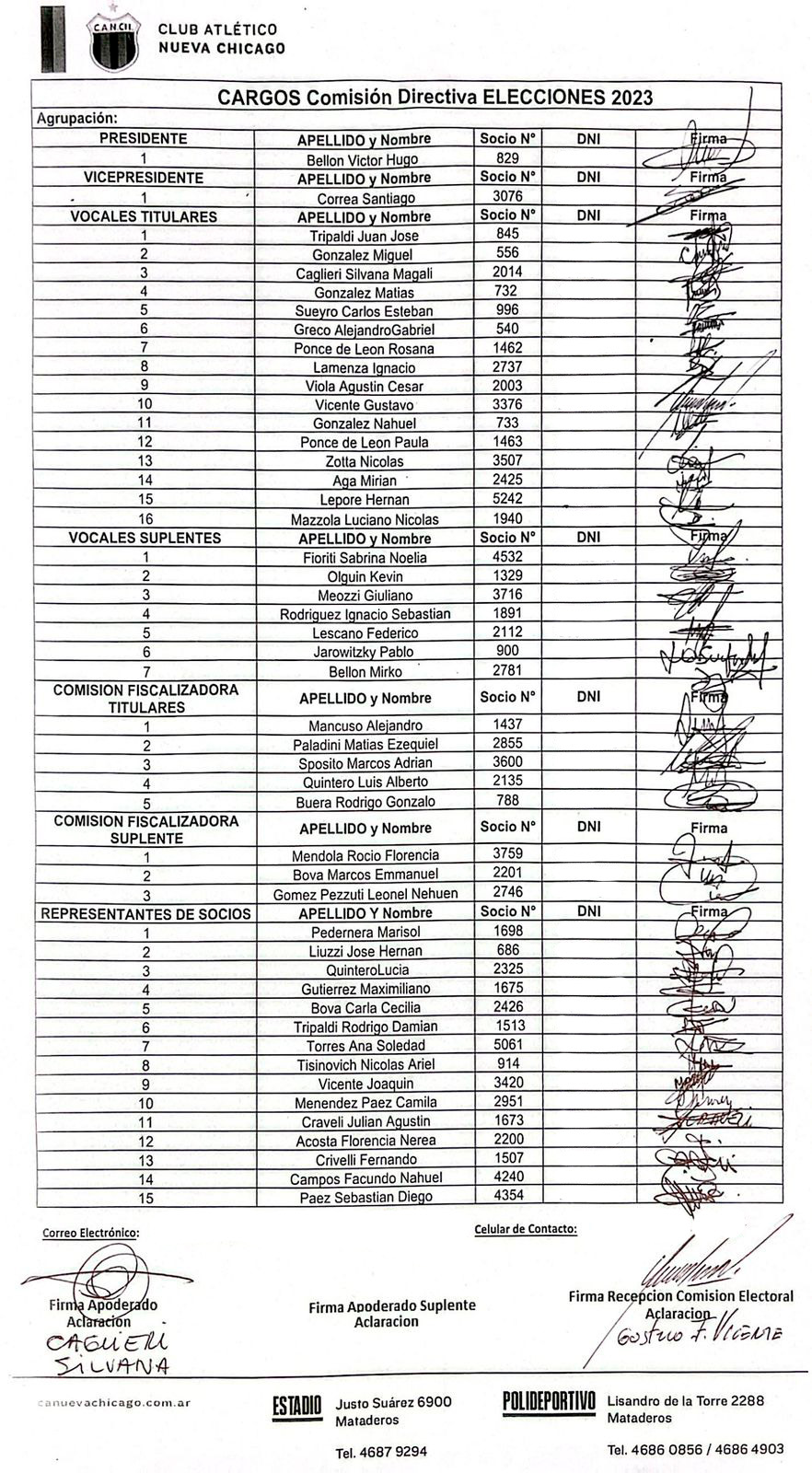 El Club Atlético Nueva Chicago informa que la Junta Electoral habilitó a las tres listas postuladas a presentarse en las elecciones del próximo domingo 17 de diciembre en el club.