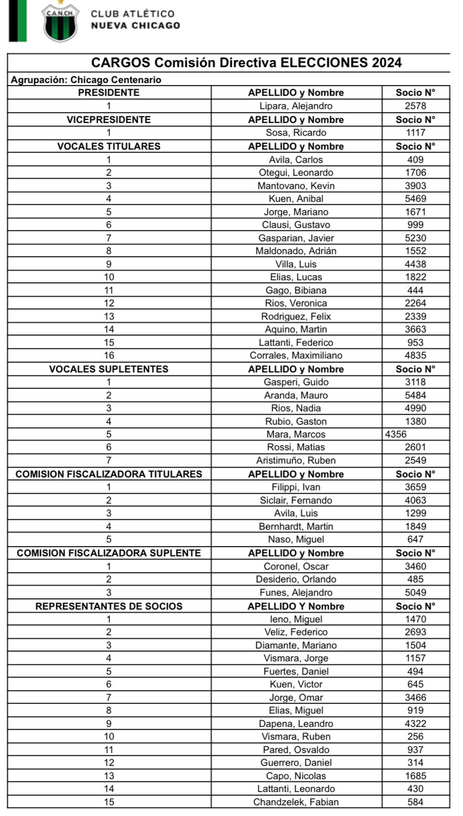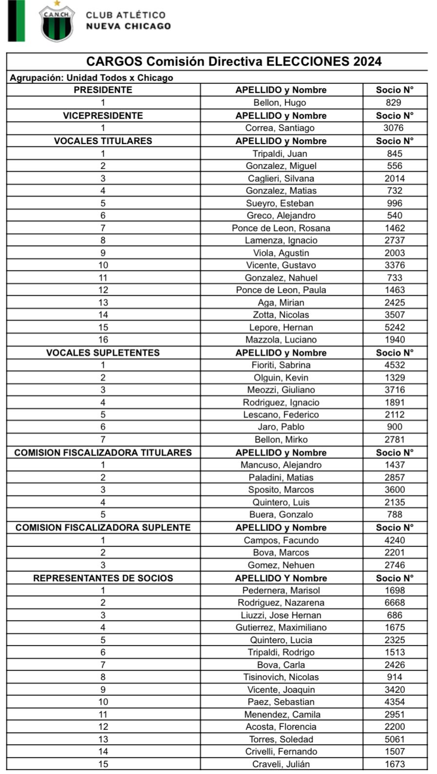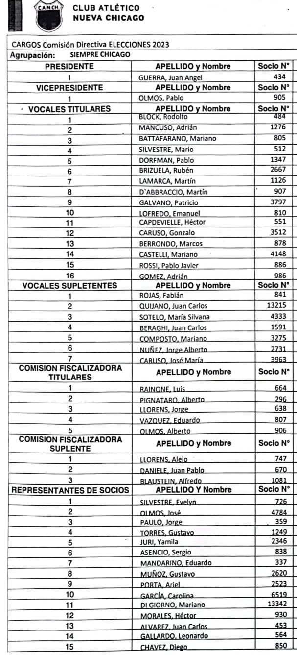El Club Atlético Nueva Chicago comunica que finalizado el plazo reglamentario para la presentación de listas para la elección de nuevas autoridades de nuestra institución. Se han presentado tres agrupaciones (Unidad TodosXChicago, Chicago Centenario y Siempre Chicago) para las elecciones que se realizarán el día 17 de diciembre.